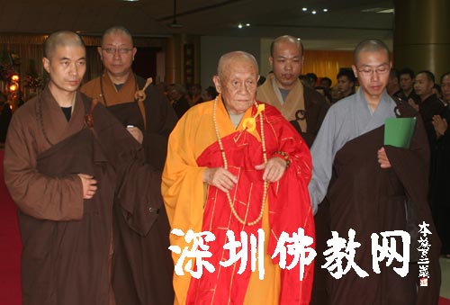 深圳佛教网讯:6月13日,九十五岁的梦参长老结束了三天的《华严经》讲经,离开弘法寺,印顺大和尚为梦参长老送行。