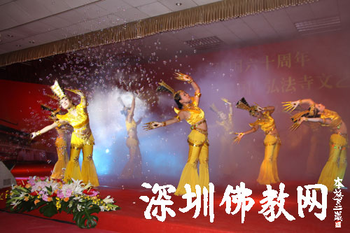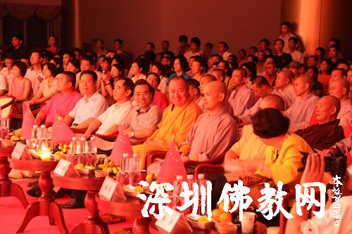 深圳佛教网讯:2009年9月27日晚,深圳弘法寺经堂张灯结彩,充满欢喜。印顺大和尚、市有关领导,寺内常住、各界信众齐集一堂感恩祖国,喜迎国庆,欢度中秋。