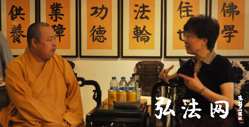印顺大和尚在座谈中对创办佛教图书馆的构思、设计、内部布置等精心的策划向康副区长一行进行了交流。印顺大和尚介绍,佛教图书馆功能齐全,分为阅览区、信息服务区、图书管理区等,并将配备多名专职工作人员做好管理和服务工作,免费为游客开放。相信不久,来自各地的游客,可以在庄严典雅的弘法寺佛教图书馆内静心阅读,也可进行网上数据搜索浏览。佛教图书馆的建设,将为广大游客特别是佛学爱好者提供一个饱尝法味的新去处。