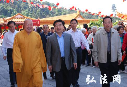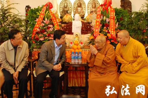 (简讯)10月27日上午,广东省委常委、深圳市委书记王荣在市委常委、统战部部长张思平的陪同下,专程前往弘法寺看望和慰问即将过104岁生日的本焕长老。