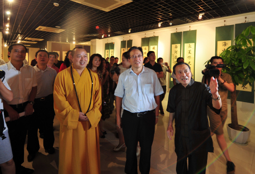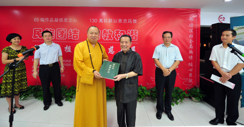 弘法网讯:2013年8月30日上午,深圳雅昌艺术馆隆重举行魏达志书法作品慈善展暨弘法寺义买善款捐赠深圳市清真寺建设仪式。与以往的艺术展览、慈善活动不同,本次活动可说是深圳市民族界、宗教界、艺术界和学术界的一件大事,是民族团结宗教和谐共创典范的经典之作。