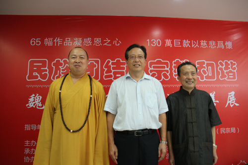 印顺大和尚在现场谈到,五大宗教只是表述上有差异,但本质是一样的,即便分成了五大教,但正如人的眼耳鼻舌构成和谐的五官一样,五大教构成了一个完整的社会。魏达志的作品劝人向善,具有普世价值,因此弘法寺将其作品义买下来,善款用于捐建清真寺。