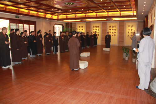 据悉,除了每天早上4点起床参加早课,诵读经书,居士培训班每天早晨7点钟开始的禅修课,佛学院宗德法师必定要带领大家行香,然后在室内开示、静坐。不少学员们觉得短短几天之内,能够听闻法师们讲解佛法礼仪,指导禅修,非常受益。