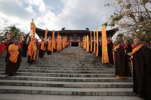 弘法网讯:11月27日,第十六次中韩日佛教友好交流会议在海南三亚唐拉雅秀酒店会议厅圆满结束后,中韩日三方代表前往海南三亚南山寺,在南山寺大雄宝殿举行了隆重的祈祷世界和平大法会。
