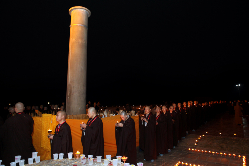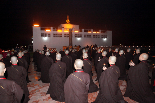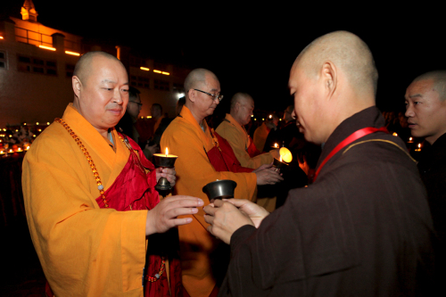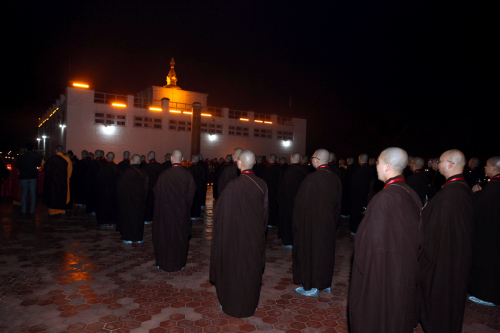 弘法网讯:2013年12月21日晚,尼泊尔中华寺与弘法寺共同在蓝毗尼圣园隆重举行传灯法会。中佛协副会长、弘法寺与中华寺方丈印顺大和尚,中佛协驻会副会长、北京龙泉寺与福建莆田广化寺方丈学诚大和尚,中佛协副会长、五台山碧山寺方丈妙江大和尚,以及120名接受三坛大戒的戒子们等数百人士参加了此次殊胜法会。