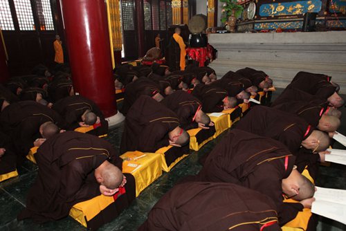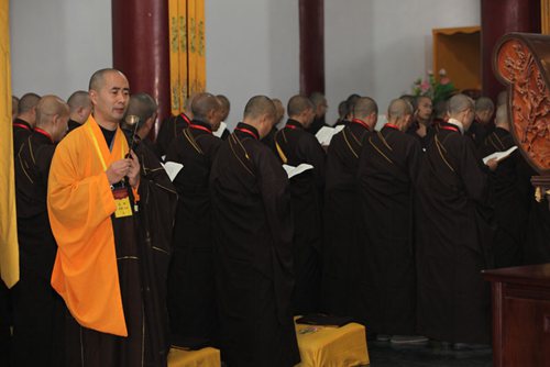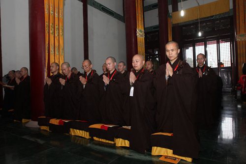 上午八点,钟磬齐鸣,梵音袅袅,中佛协驻会副会长、北京龙泉寺与福建莆田广化寺方丈学诚大和尚,中佛协副会长、五台山碧山寺方丈妙江大和尚,中佛协副会长、弘法寺与中华寺方丈印顺大和尚三师七证及诸引礼、纠察师堪为人天师表,按规引导,悉心为新戒如理如法地传授菩萨戒,为中国佛教界培养荷担如来家业的优秀接班人。