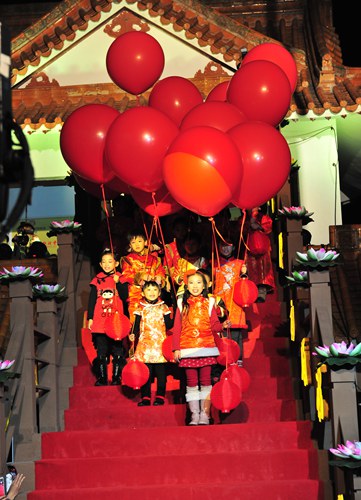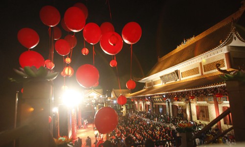 31日晚23时整,弘法寺内经声朗朗,梵乐飘飘,数十位法师在弘法寺大雄宝殿内举行了祈福法会,以佛教特有的方式迎接新年的到来。现场气氛隆重祥和、庄重大气。23:30,大雄宝殿广场前隆重举行了2014年“盛世钟鸣,祈福五洲”新年鸣钟祈福活动,弘法寺居士唱诵团共同为新年朗诵祈福颂词拉开了活动的序幕,人文雅颂,诗歌礼赞。现场也举行了放飞祈福灯活动,祝福瞬间点燃新年即将到来的喜悦和激动。