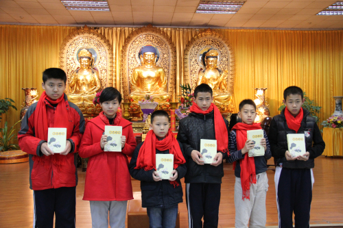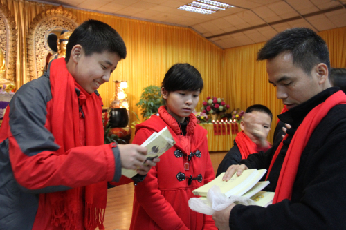弘法网讯:2014年1月24日下午,弘法寺经堂内隆重举行了首届亲子冬令营结营仪式,场面温馨感人。不论是孩子、家长还是义工菩萨们都有一份沉甸甸的收获。
