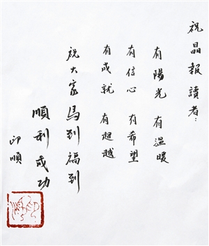 印顺大和尚题字祝福晶报读者。