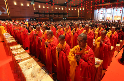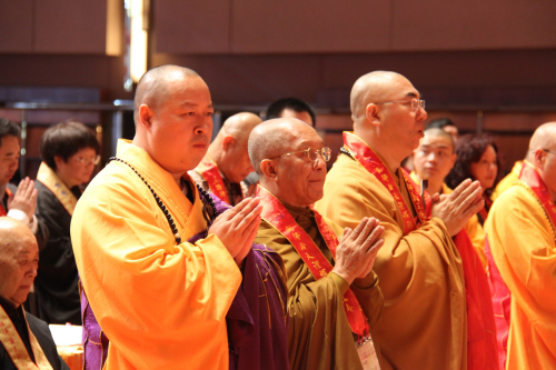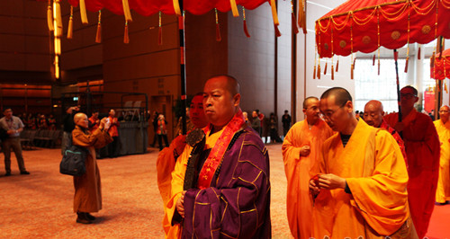 上午九时,法会礼请香港佛教联合会会长、香港观宗寺法主和尚觉光长老,台湾中国佛教会理事长净良长老,澳门佛教总会会长健钊长老,世界佛教僧伽会副会长、香港佛教僧伽联合会会长绍根长老,藏传佛教扬唐仁波切长老,中国佛教协会副会长、海南省佛教协会会长、弘法寺方丈印顺大和尚,香港佛教联合会执行副会长、香港西方寺方丈宽运大和尚,台湾中国佛教会副理事长心茂大和尚,香港佛教三德弘法中心主席净雄大和尚,隆辉大和尚,浙江碧岩禅寺住持体禅法师等108位大德法师共同主法。