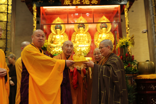香港凌云寺隆重举行了第十八代住持衍悌法师晋山法会。中国佛教协会副会长、海南省佛教协会会长、深圳弘法寺方丈印顺大和尚应邀出席了晋山法会。诸山长老、各界嘉宾、护法居士出席典礼,共同见证了这一神圣而庄严的佛门盛事。