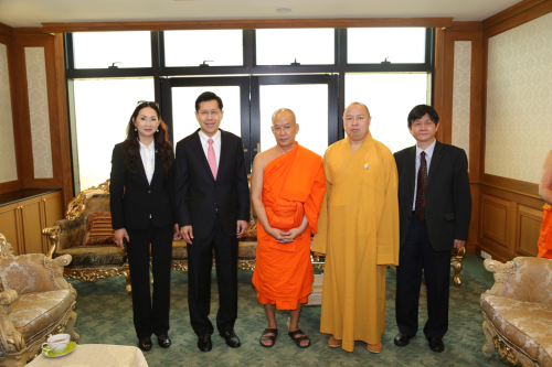 (左2)泰国副总理长吉迪腊,(右1)秦裕森参赞,(左3)副僧王帕波玛师提长老与(右2)中国佛教协会副会长印顺大和尚合影留念
