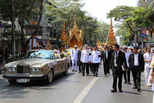 泰国皇室恭送代僧王菩塔瞻长老法体前往法会现场