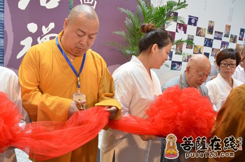 传印长老、印顺大和尚等为活动剪彩(图片来源:菩萨在线 摄影:妙雪)