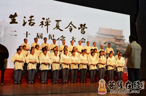 纪念大会的最后节目是诗歌朗诵《生活禅夏令营颂》以及北京禅悦之声合唱团合唱《生活禅曲》和《从心开始》。禅悦之声合唱团是净慧老和尚生前提议组建的,已经有五年的历史。该团以北京赵州茶馆为依托,多年来,大作音声佛事,先后有上百人参加,受到广大在家信众的热烈欢迎。