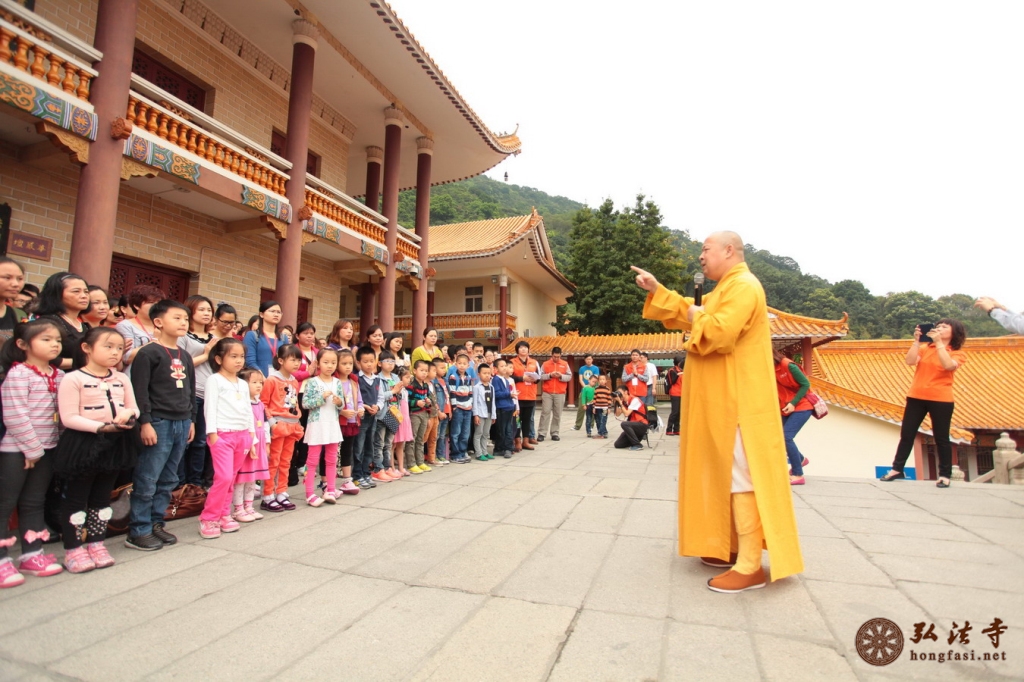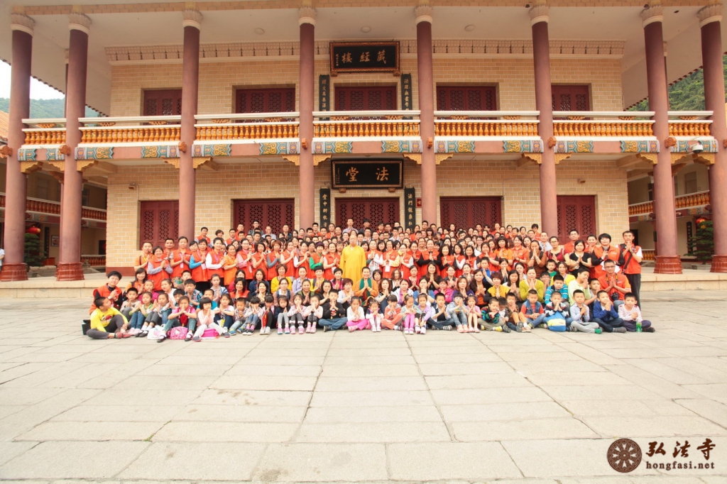 弘法网讯:2014年3月29日,第三期弘法寺义工培训班的学员和国学班的小朋友们,在弘法寺举行了缅怀上本下焕老和尚圆寂两年的寺院巡礼活动。