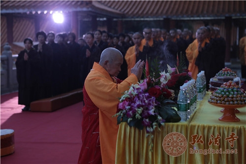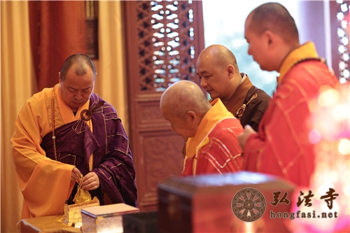 深圳弘法寺在法堂举行了护送本焕长老舍利赴湖北新洲报祖寺供奉仪式