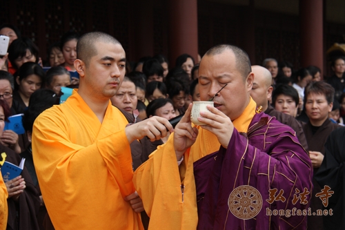 4月8日下午3点,在弘法寺2014年清明思亲报恩水陆超度法会的第六天,弘法寺在斋堂门前举行了殊胜的放生法会。中国佛教协会副会长、海南省佛教协会会长、深圳弘法寺方丈印顺大和尚亲自主法,200多名水陆法会功德主及居士信众随喜参加放生仪式。