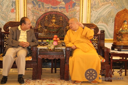 弘法网讯:2014年4月10日下午,尼泊尔前文化部部长施瑞斯塔一行到深圳弘法寺交流访问,受到了中国佛教协会副会长、海南省佛教协会会长、深圳弘法寺方丈印顺大和尚的热诚接待。