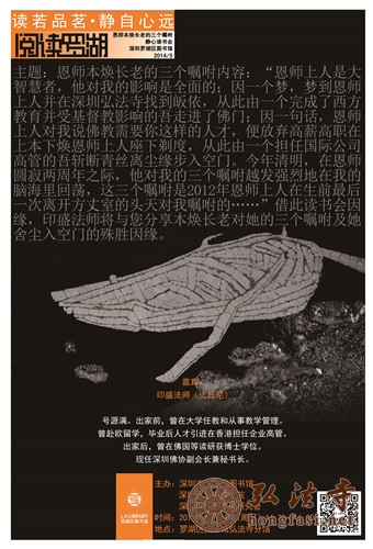 借此读书会因缘,印盛法师将与您分享本焕长老对她的三个嘱咐及她舍尘入空门的殊胜因缘。