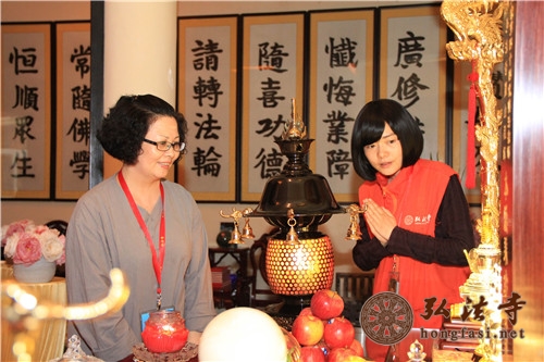 弘法网讯:2014年4月22日上午,在弘法寺佛学院居士培训班班主任的带领下,学员们一行以虔敬的心情瞻礼本焕长老的舍利,表达了对德高望重的佛门泰斗的敬重之意。