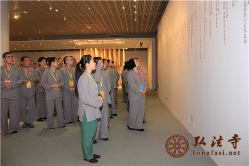 2014年4月22日上午,在弘法寺佛学院居士培训班班主任的带领下,学员们一行以虔敬的心情瞻礼本焕长老的舍利,表达了对德高望重的佛门泰斗的敬重之意。接着,培训班学员们参观了在本焕长老纪念馆。馆内展出本焕长老生平图片外,还有本焕长老生前使用物品,以及多媒体播放长老事迹、开示以及接受采访等内容。弘法寺义工师兄向大家介绍本焕长老生平,讲述了本焕长老出家、高旻寺修禅、朝拜五台山、刺血写经等令人感动的事迹,以及本焕长老修复祖庭、建寺安僧的巍巍功德和菩萨行谊。