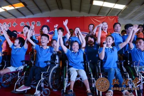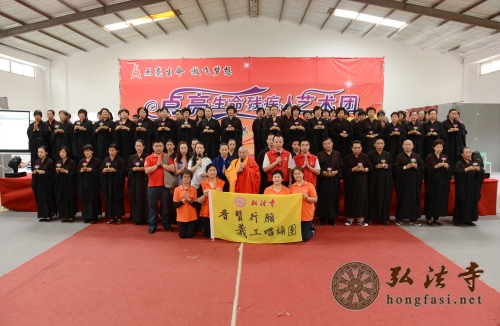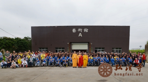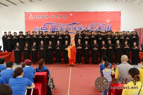 弘法网讯:2014年5月1日是传统五一劳动节日,五一假期,当人们都出门游山玩水,享受天伦之乐的时候,中国佛教协会副会长、海南省佛教协会会长、深圳弘法寺方丈印顺大和尚委托弘法寺首座一如长老带领深圳弘法寺公益唱诵团以及联花关爱志愿者协会的200多位义工们前往位于坪山新区的点亮生命残疾人艺术团和橄榄树残友互助中心,为这里的七十多位残疾朋友们送来了节日问候和祝福。弘法寺义工们为这儿的残疾朋友们做饭打扫卫生,并为他们捐赠了一批生活物资和善款。