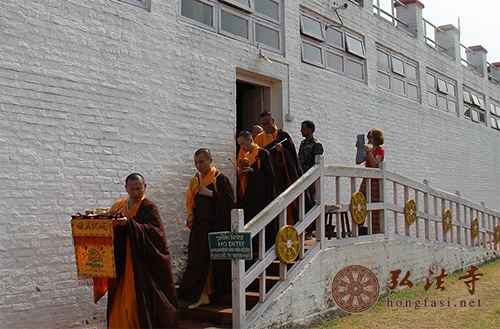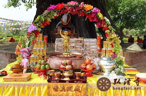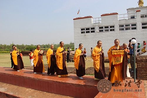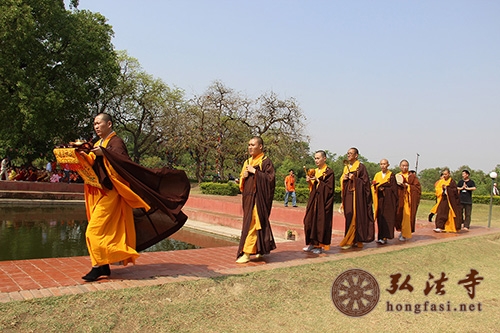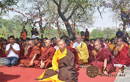 弘法网深圳讯:2014年5月6日,为缅怀佛陀的恩德,在尼泊尔中华寺方丈上印下顺大和尚的嘱托下,中华寺当家中勇法师率领全寺僧俗四众于佛陀出生地——蓝毗尼圣园举办汉传佛教浴佛法会。三大语系几十个国家的上百位法师,及包括朝礼圣地的香客,深圳弘法寺唱诵团成员,年轻的大学生背包客等共二百多人参加了庄严殊胜的浴佛法会。