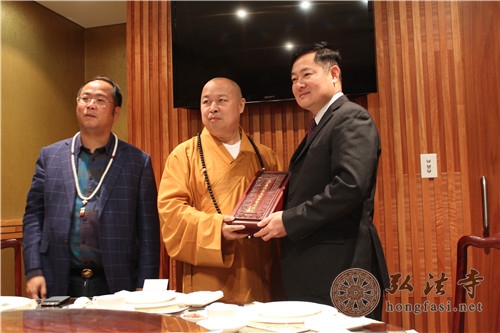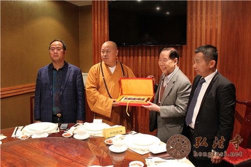 中国文化以礼为先,礼仪之邦的后人奉行为人和善,待人诚恳,谦恭厚道,热心公益,他们以造福同胞为己任,致力于华人社会的团结互助,推动中华文化的弘扬,多年来热心服务社会,在澳洲获得了许多荣誉和奖项。他们曾到弘法寺进行访问交流,了解弘法寺开山祖师本焕长老的生平弘法事迹,非常钦佩长老的修为,亦对印顺大和尚在修行、弘法及对中外佛教文化交流等方面所做出的杰出贡献表示敬佩。印顺大和尚向他们赠送了精美礼品,并合影留念。