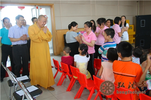 弘法网深圳讯:2014年7月16日上午10:30,深圳弘法寺慈善功德基金会赴龙岗区社会福利中心开展“抱一抱,献爱心”慈善慰问活动。深圳市委统战部副部长兼深圳市民族宗教事务局局长姚任,中国佛教协会副会长、海南省佛教协会会长、深圳弘法寺方丈印顺大和尚,深圳市龙岗区区委副书记、龙岗区区长冯现学,龙岗区区委常委、统战部部长吴书坤,深圳市龙岗区民政局局长李一坚等领导参加了此次慈善活动,特邀中国驻尼泊尔特命全权大使吴春太伉俪出席。