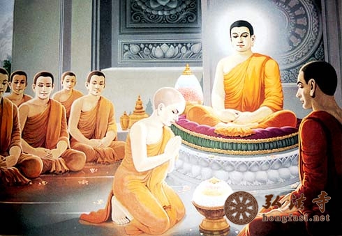 当时,释迦菩萨是住在喜玛拉雅山脚下的一位沙门。他拥有五神通及四禅八定。有一天,他以天眼通观察印度时看到阿沙卡王正在悲泣,于是立刻下定决心要去帮助他。他运用神通飞上天空,然后降落在国王的公园,犹如一尊金像地坐在园里的石座上。