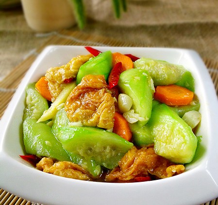 2、丝瓜含糖较高,且瓜籽含有黑色素,碰到高温颜色容易变黑。所以,别大火快炒,因为咱家里没有饭店那么那么好的火,爆炒起来时间不像饭店里那么短。所以试着中火炒炒看!