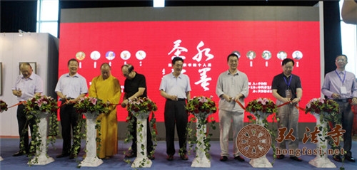 在之后的“第二届水墨茶禅当代名家书画十人展”开幕式上,中国茶文化国际交流协会秘书长吴军捷先生宣了读第十一届全国政协常委杨孙西先生的贺信,第十一届全国政协常委、王立平先生代表书画家讲话,世界都市文化交流协会执行会长、生活禅院秘书长李之柔先生致答谢词。最后由中国佛教协会副会长印顺大和尚、明月法师与参会嘉宾及书画家代表中央文史馆馆员、原民进中央驻会副主席王立平先生、全国政协民宗委委员张卓将军、第十二届全国政协常委、全国工商联原常务副主席孙安民先生、著名书法家李福祥先生、世界都市文化交流协会执行会长李之柔先生剪彩开幕。