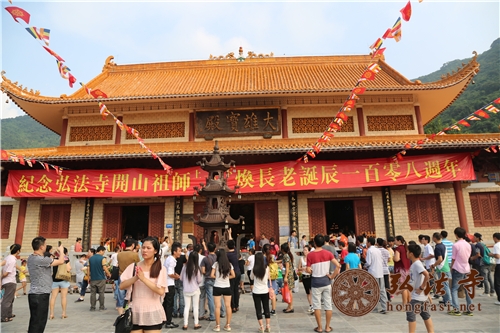 弘法寺深圳讯: 2014年10月12日是观世音菩萨出家日,又逢本寺开山祖师上本下焕老和尚108诞辰之际,在这个特殊的日子,弘法寺隆重启建观音菩萨出家日拜忏法会和慈悲放生法会,以此殊胜功德回向世界和平、国泰民安;祈愿本焕长老乘愿再来、普度众生,祈愿大众福慧双增、精进修道、速登菩提、圆成佛道。