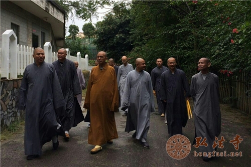 2014年11月16日,弘法寺佛学院院长助理印钦法师、副教务长来定法师及教务处西相法师代表院长印顺大和尚冒雨到极乐寺调研。在三水极乐寺监院常志法师、副寺演悟法师的陪同下前往寺内各处以及在建的新寺院区域参观。并看望在寺实习的学僧,深入了解学僧实习的各方面情况。