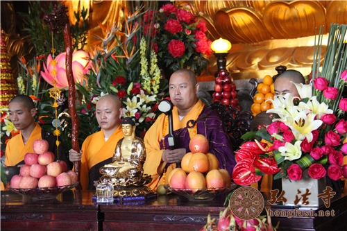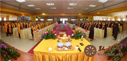 弘法网深圳讯:2014年11月23日,深圳弘法寺隆重举行首届千僧大斋胜会暨恭祝香港宝莲禅寺戒期圆满法会。此次法会庄严盛大,如理如法,是深圳有史来首届千僧斋法会。中国佛教协会副会长、海南省佛教协会会长、深圳弘法寺方丈印顺大和尚出席法会并慈悲主法。弘法寺及各下院法师、本焕学院全体师生及来自全国各地赴香港宝莲禅寺受戒圆满的戒子等近千位僧众前来应供,以此殊胜供僧功德回向正法久住,三宝兴隆,国泰民安,世界和平。
