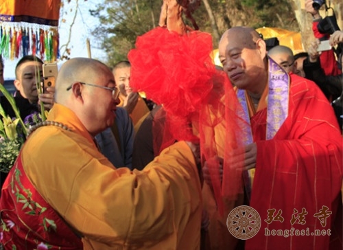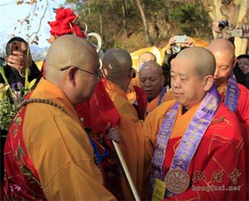 中国佛教协会副会长、福建省佛教协会会长、福建莆田广化寺、陕西法门寺、北京龙泉寺方丈学诚大和尚授衣