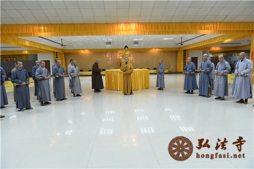印顺大和尚说,今天大家能在弘法寺用功办道,这是我们与本老无比殊胜的因缘。这个道场是本焕长老亲自选址、奠基、筹建的。本老作为禅宗的传承者,在他老人家的道场里,禅堂是最重要的地方,禅七也是弘法寺每年最重要的法会。老和尚是参话头开悟的,这是最直接的方法。各位都是亲近过老和尚的,希望大家能珍惜在本老道场的因缘。过去禅宗的高僧大德是这样走过来的,本老也是这样走过来的,只要沿着老和尚的修行的脚步走肯定不会错。希望大家能在这七天能一心一意放下万缘,用功办道,熟悉禅堂的仪轨,生起真正的信心,并在这个七日内,能把持连绵,昼夜六时能心心念念都在话头上,克期取证,早日了生脱死,度化众生。希望大家能好好发心,一心一意参禅,找到自己本来的面目。
