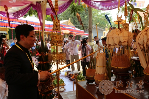 柬埔寨副总理任财利代表柬埔寨王国政府出席此次本老舍利赴柬埔寨永久安奉祈福法会