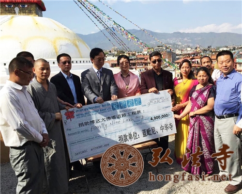 尼泊尔中华寺在加德满都为博达大佛塔捐款30万元人民币