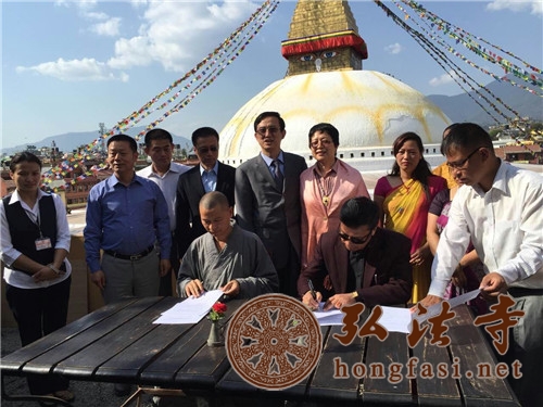 2015年4月9日,尼泊尔中华寺在加德满都捐款30万元人民币,用于为当地世界遗产博大哈佛塔重修一条约600米长的“转经路”