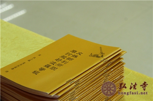 2015年5月21日(农历四月初四),弘法寺隆重启建文殊师利菩萨圣诞日诵经法会,以此诵经功德回向世界和平、国泰民安;祈愿大众精进修道、速登菩提;祈愿莘莘学子福慧双增、学业有成。受印顺大和尚委托,弘法寺首座印定长老主持本次法会。
