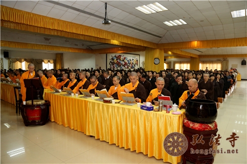 上午8点整,在弘法寺经堂隆重举行《大悲忏》法会。智空法师主持并率领弘法寺常住及十方信众虔诚持咒,祈请观音菩萨慈悲加持,以令五浊恶世的众生能脱离烦恼,人人回归清净本性,使灾祸平息、苦难远离,祈愿国运昌隆、民乐安康、世界和平、正法久住。