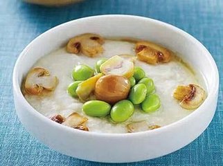 [材料]:白木耳30公克、栗子片公克、板豆腐3块、松茸菇100公克、烫熟青豆仁20公克