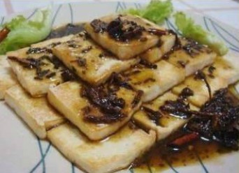 原料:豆腐、香椿酱(具体说是泡在菜籽油里的香椿,好像还不算是酱,暂时先这么叫吧)、素蚝油做法:1、豆腐切片,用少许油煎至两名金黄,取出盛盘。2、另起锅,将香椿连菜籽油一起倒入锅中,再加入素蚝油、少许水一...