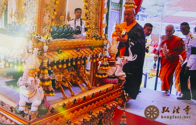 弘法网泰国讯:2015年12月15日至17日,应泰国政府巴育总理邀请,以中佛协副会长印顺大和尚为团长、祜巴龙庄勐副会长为顾问的中国佛教代表团一行六人赴泰国曼谷出席泰皇室、政府与最高僧伽委员会共同主办的泰僧王智护尊者国葬典礼。