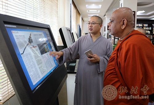 上午8点30弘法寺知客顿智法师陪同苏玛校长参观了弘法寺。本焕学院教师源满法师带领苏玛校长前往本焕学院。由本焕学院崇瑛法师带领苏玛校长一行参观学院各教学设施,详细介绍学院办学理念与宗旨。苏玛校长对本焕学院的热情接待表示感谢。座谈交流中,本焕学院道风清净,办学别具特色,人才辈出,成绩卓著,让苏玛校长为之赞叹。苏玛校长介绍了斯里兰卡佛教学与巴利语大学的概况以及学术背景。谈及此行最大的心愿,是希望与本焕学院交换留学生,以后和本焕学院在更多方面进行学术与学业上的交流。