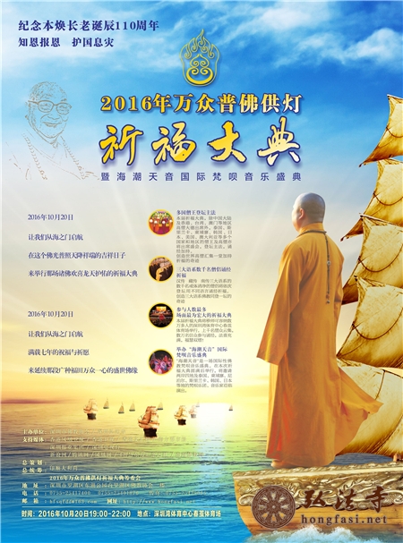 “让我们启航,在天高云淡的日子里启航,直挂云帆,乘风破浪,因为海就在前方;让我们启航,在年华盛开的日子里启航,慈悲充满,喜乐安详,因为岸就在前方。”——2016年10月20日,让我们从海之门启航,我们相约传递,传递慈悲,传递友爱,传递祝福,传递祈愿,传递2016年万众普佛供灯祈福大典的梦想奇迹!