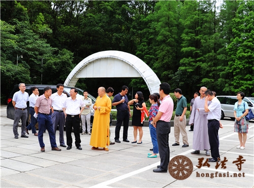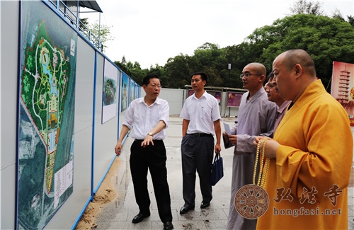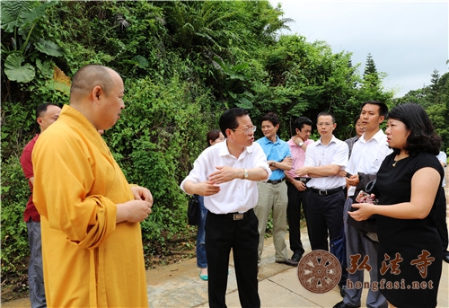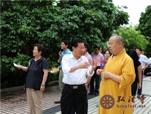 2016年5月10日下午,深圳市政府李廷忠秘书长率队来到弘法寺,调研本焕学院用地选址、万佛禅寺项目规划建设等情况。中国佛教协会副会长、深圳弘法寺方丈、本焕学院院长印顺大和尚热情接待李廷忠秘书长一行,并陪同进行各项目实地考查。