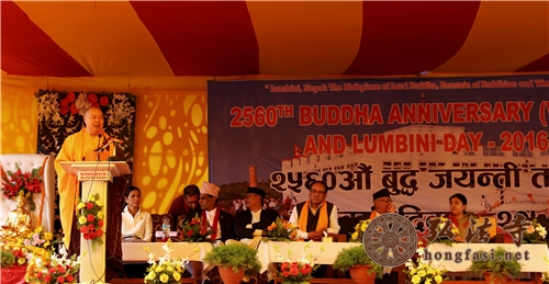 应尼泊尔总理奥利邀请,中国佛教协会副会长、尼泊尔中华寺方丈印顺大和尚率中国佛教协会代表团一行与来自28个国家的数百名政府官员、佛教界僧侣、学者等21日齐聚蓝毗尼,参加盛大的佛祖释迦牟尼诞辰2560年纪念日。印顺大和尚在大会上发布主题演讲: